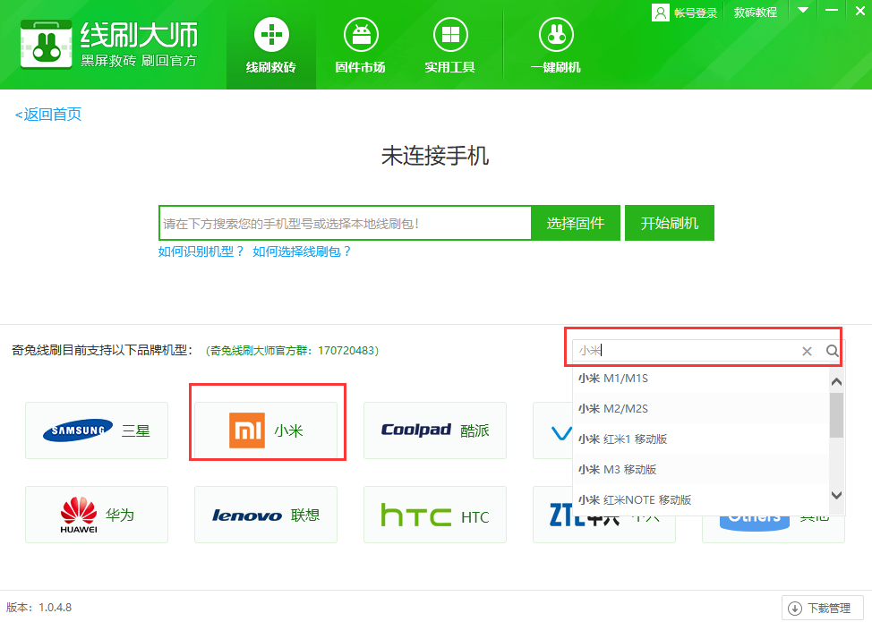 2、搜索自己手机型号的机型,也可以点击下面机型品牌去里面详细查找,不知道如何选择正确的线刷包的用户,可点击“如何选择线刷包?”进入相关教程贴学习,小米手机用户可直接选择小米线刷包。