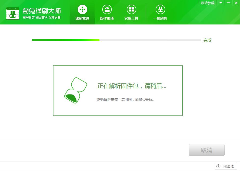 4、等待线刷包下载完成后,奇兔线刷大师会解析线刷包,静待解析完成