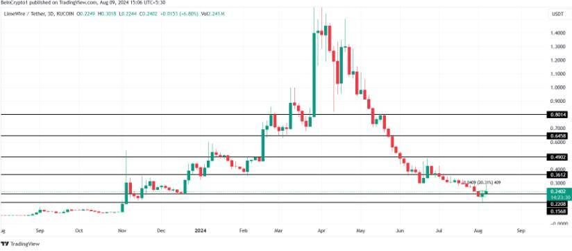 与此列表中的其他两种**不同,LimeWire 的涨势并不那么引人注目,但它在过去一周内仍成功上涨了 20%。然而,LMWR 距离从最近的下跌中恢复还有很长的路要走。