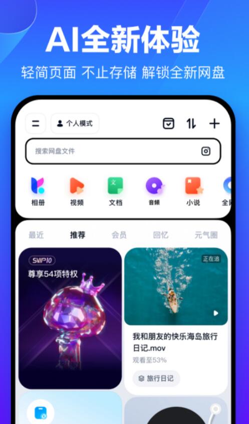应用内的备份服务,可以把设备内的短信、文件、通话记录等数据**存到云空间内,可以缓解设备的存储压力,让日常使用变得更为流畅。大家平时存在云盘内的视频,不用下载就能在线播放,还可以调整速度、画质等参数,享受优质的视听体验。新加入的AI复杂功能,可以帮你快速找到需要的文档,要是看的视频没有字幕,也可以让智能算法自动识别并输出文字,方便你去观看。