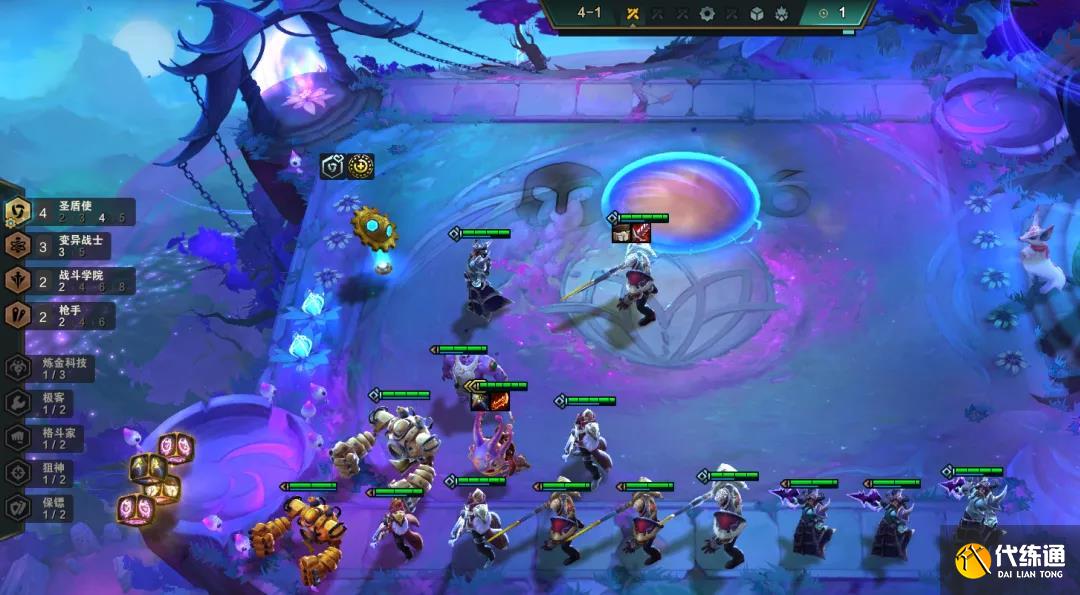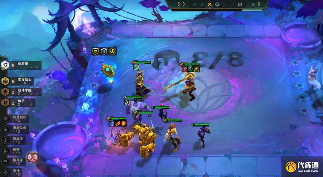 羁绊组成:3圣盾使 3变异战士 2战斗学院 2**