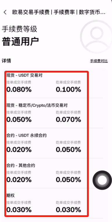 欧易交易所的现货是万8,他现货手续费的挂单要比币安的挂单稍微便宜一点。现货稳定币的挂单是万5,吃单是万7。合约手续费的U本位合约,挂单是万2,吃单是万5。其他合约也是万2和万5,其他都是和币安是一样的。