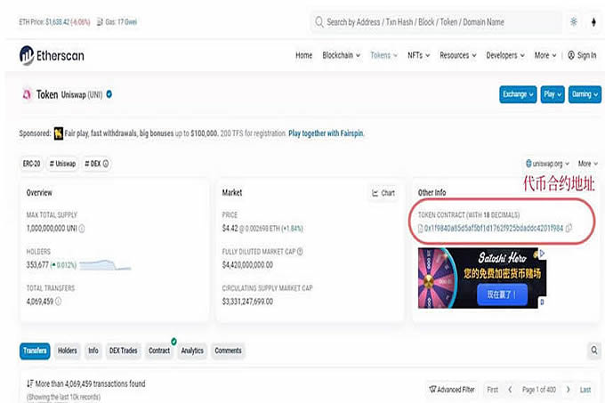 查一个币的合约地址方法有该币种对应的区块链浏览器或者官网查询两种。以下是通过区块链浏览器查找UNI**合约地址的教程: