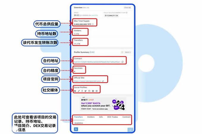 2、**详情页面包括总供应量、持币地址数、合约地址、合约精度、官网等基本信息。