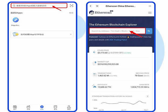 下文以tp钱包为例,具体介绍一下在以太坊浏览器中查询**的教程步骤: