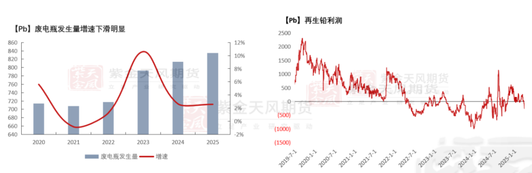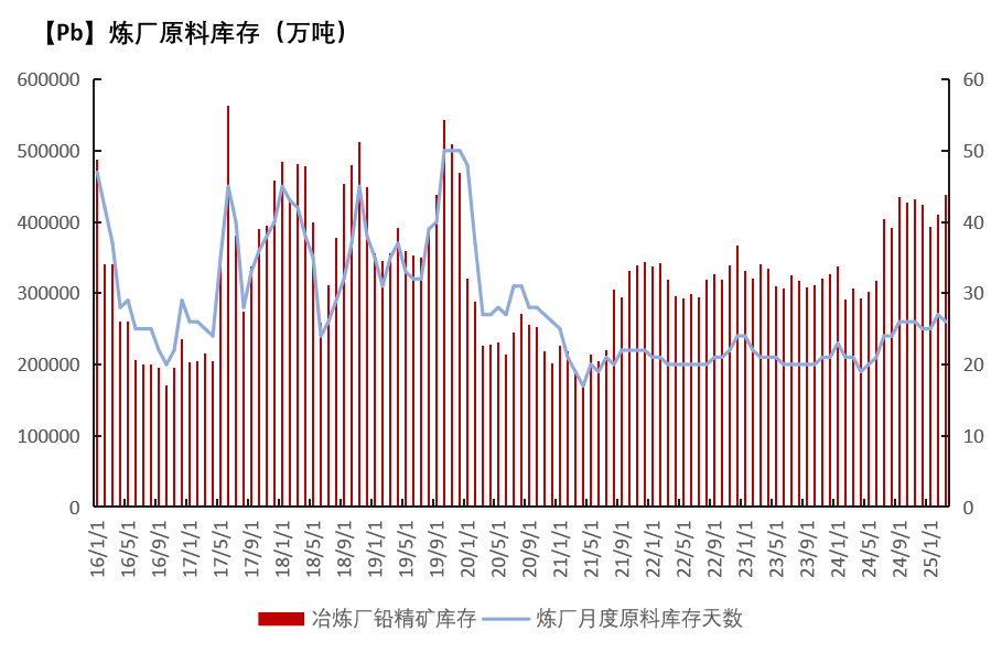 需求方面,预计25年产量有限,**新增10万吨,预计25年铅矿轻微过剩,原生侧矛盾不大。