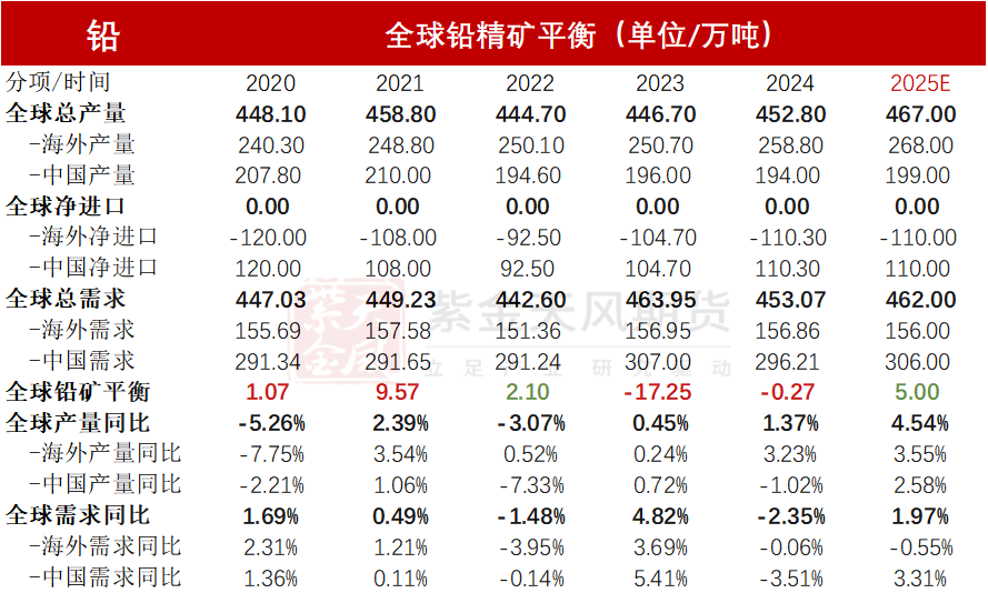产量方面,预估25年新增铅精矿15万吨,其中海外新增产量10万吨,同比增速3.55%;**新增产量5万吨,同比增速2.58%;