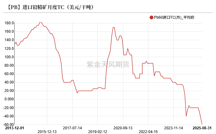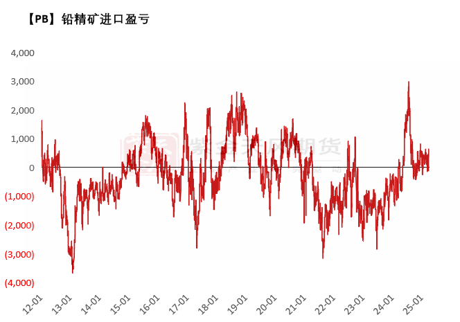 2025年全球原料供应保持修复,但增量有限,从各项目推算,铅精矿恢复量级远不及锌精矿,且白银和锑等小金属价格较好,今年或难以看到tc的显著上行;