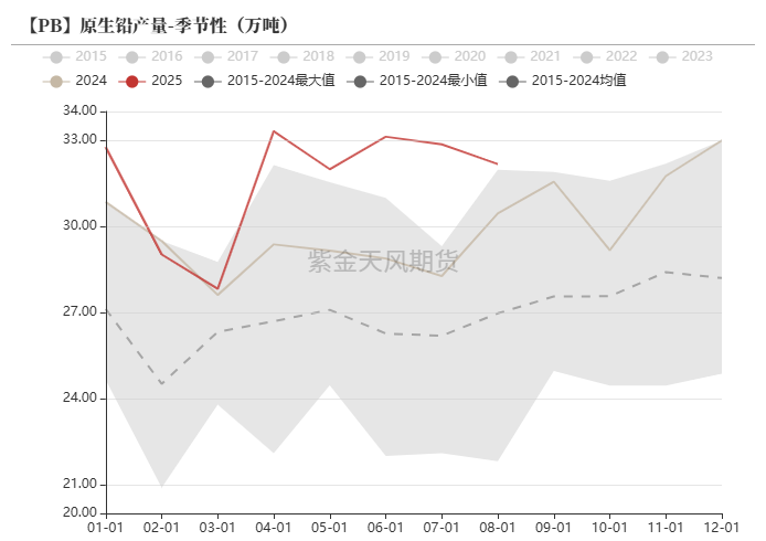 历史上来看,原生铅的产量相对稳定,且弹性较低,预计全年的原生供应增速在2%左右。