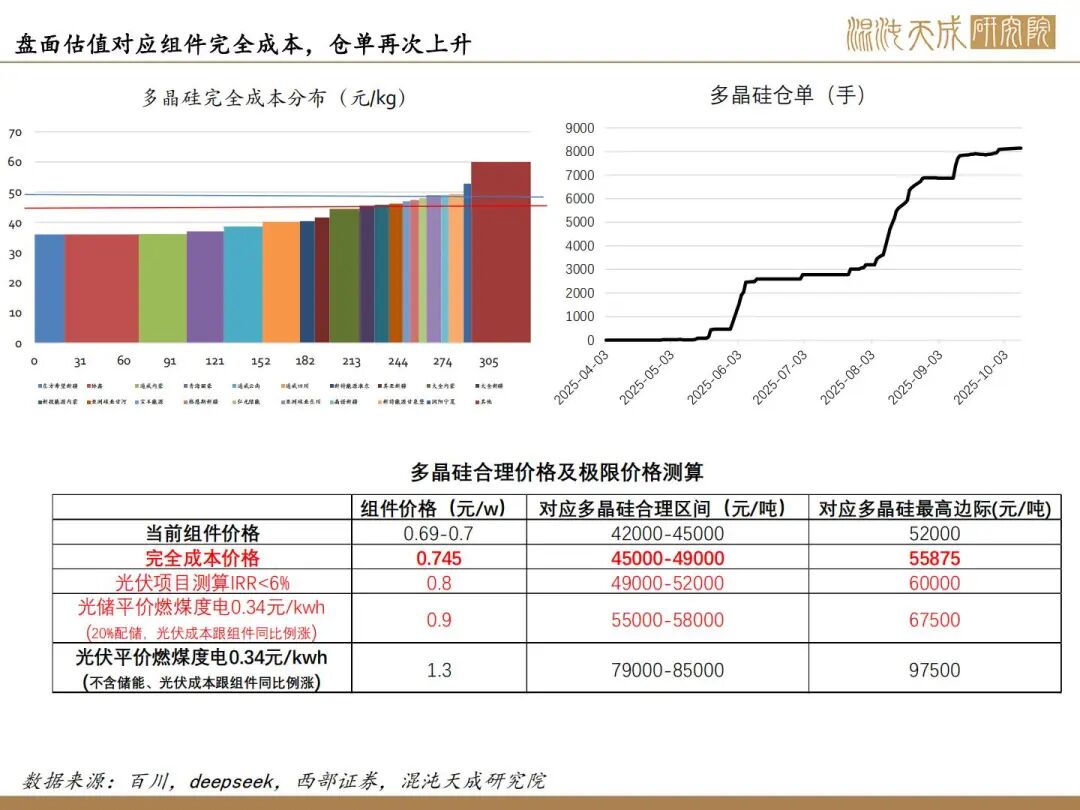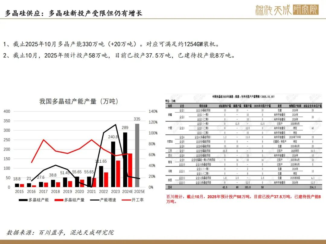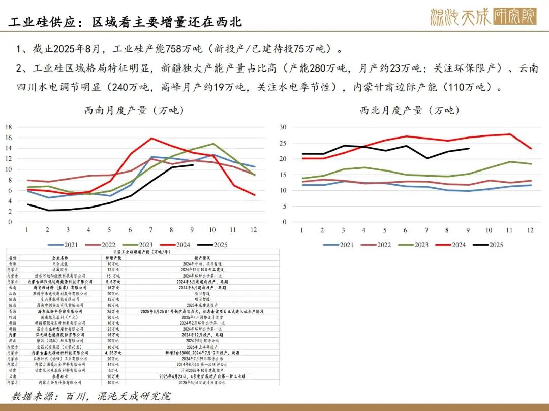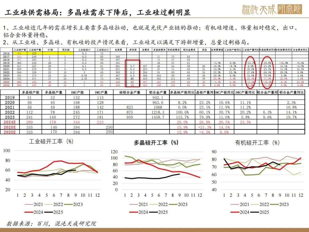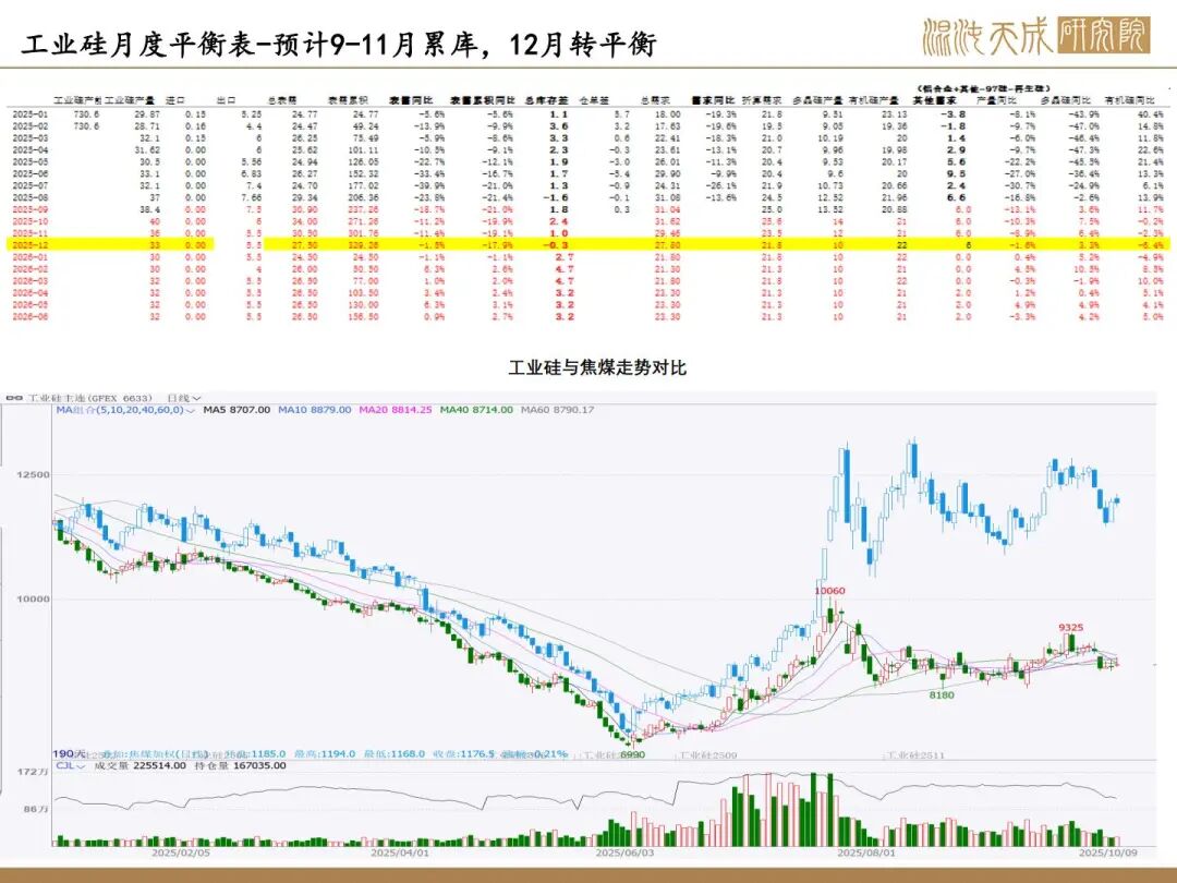 1、反内卷实际影响不大,核心驱动看供需;10月供增需稳,11月供需双弱。目前看因西南将入枯水期,供应弹性下降,核心关注合盛复产情况,若合盛继续复产,累库压力持续上升,若保持当前开工,预计大致平衡。
