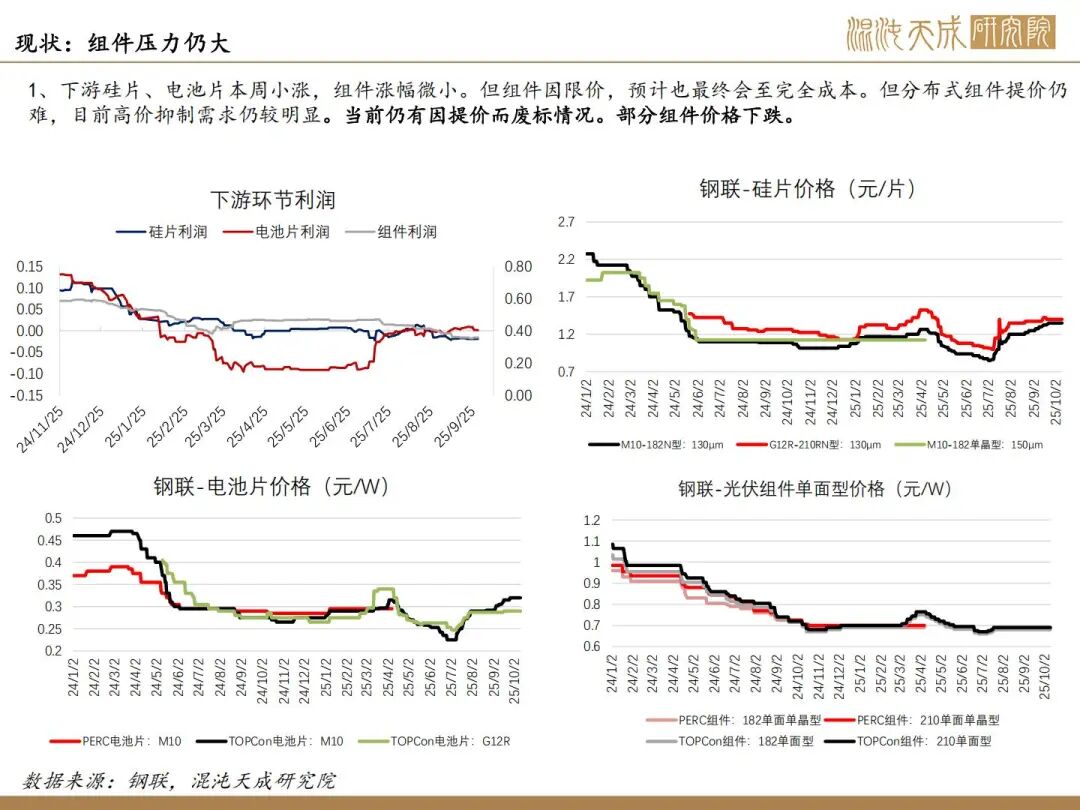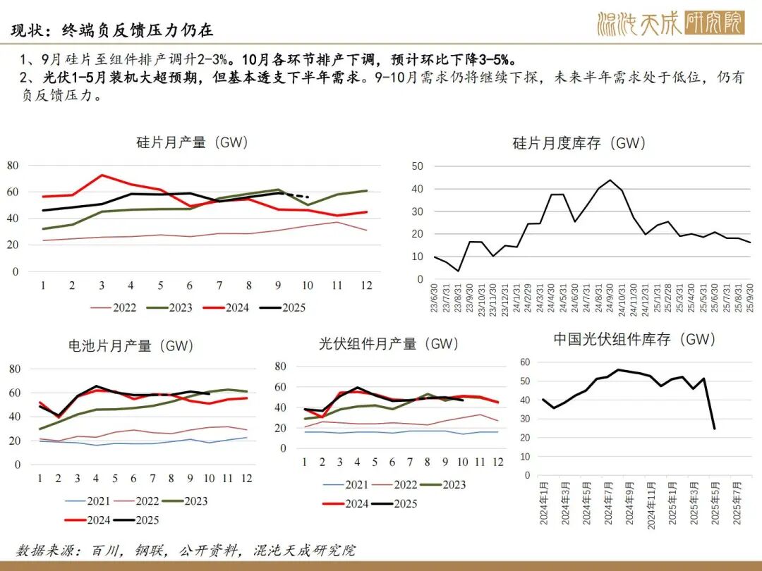 3、现实仍为高供应弱需求高库存,但10月排产看产量升5%左右,11月西南进入枯水期产量有下降预期。下游10月排产预计下降3-5%。下半年装机预期差,终端仍在探底,有负反馈压力。