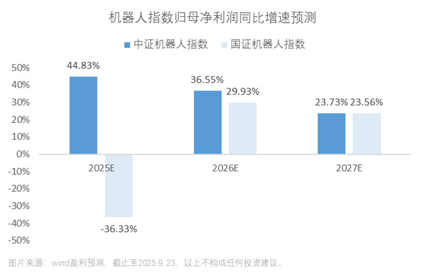 3)盈利预期光芒四射。2025年上半年,中证机器人指数前十大成分股中有7只实现营收同比增长、6只实现归母净利润同比增长,其中前两大权重股汇川技术/科大讯飞归母净利润分别增长40.15%/40.37%。根据wind预测,中证机器人指数2025年归母净利润同比增速达44.83%,遥遥**国证机器人指数的-36.33%,且2026年的归母净利润同比增速也超过国证机器人指数。盈利能力更加优质、更加具有确定性,有望在行业的高景气周期迎来“戴维斯双击”。
