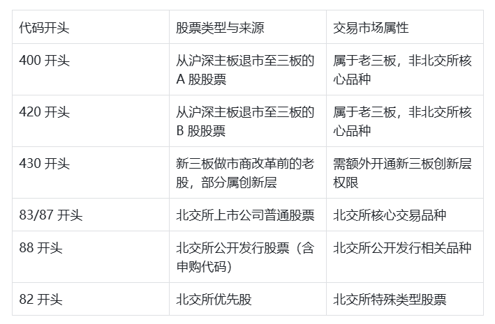 「权限要求」:430 开头创新层股票需额外开通新三板创新层权限(条件与北交所类似);400/420 开头退市股需开通老三板权限(无资产门槛,但需单独申请)。