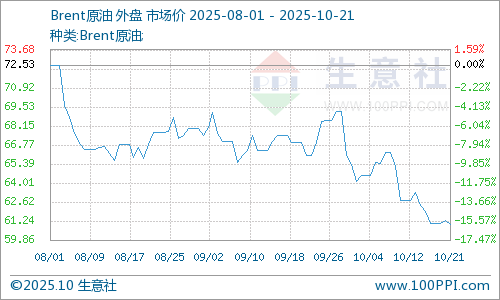 10月20日,**原油期货小幅收跌。美国WTI原油期货12月合约结算价报57.02美元/桶,跌幅0.13美元或0.2%。布伦特原油期货12月合约结算价报61.01美元/桶,跌幅0.28美元或0.5%。