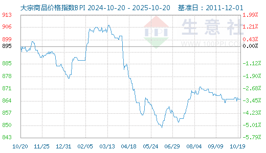 10月20日大宗商品价格指数BPI为865点,与昨日持平,较周期内**点1343点(2021-10-19)下降了
