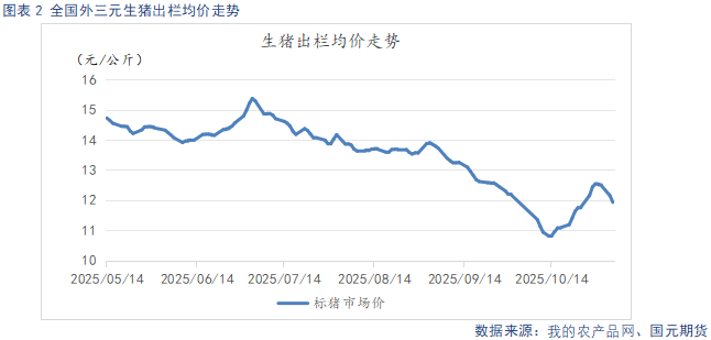 供应端上,通过能繁母猪存栏变化推算,四季度市场理论供给量仍将维持高位。与此同时,临近年末,规模场为完成年度出栏目标,出栏压力较大。猪价低位反弹后,近期认卖情绪升温,二育补栏成本也随之上升,入场积极性下降。需求端上,当前缺乏节日氛围,腌腊、年底备货还未形成规模,下游白条走货偏缓,屠企开工率同步走低,购猪积极性明显减弱。不过随着**气温进一步下降,南方地区腌腊需求有望逐步释放,叠加元旦、春节需求的拉动,猪肉消费逐步进入季节性旺季。短期来看,10月的压栏、二育使得供给后置,进一步加大年底供应压力,目前出栏节奏逐步加快,短期供给趋向宽松。而需求尚未集中启动,处于逐步复苏的阶段,供强需弱格局延续。不过此前,期现走势分化,盘面相较于现货,走势偏弱,已提前兑现对潜在供应压力的预期。因此在现货反弹受阻的当下,盘面下方空间有限,预计短期低位震荡为主。生猪2601参考区间11500-12500元/吨。