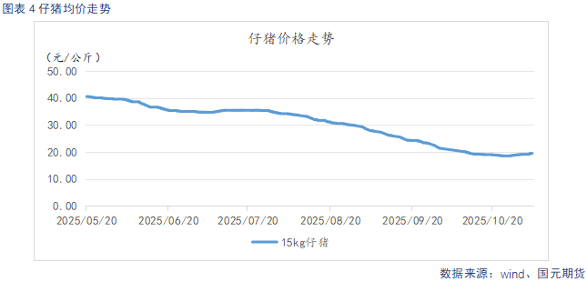 截至11月4日,仔猪出栏均价19.69元/公斤,较上周环比下跌0.76元/公斤。供给压力较大,养殖端对后市预期不强,补栏积极性不高,仔猪价格处于下行通道。仔猪价格持续低迷,低价补栏意愿略有上升,仔猪价格止跌企稳。