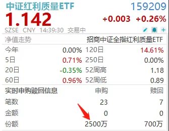 两市唯一的中证红利质量ETF(159209)盘中获超2000万增仓
