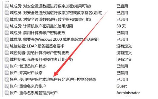 6. 找到账户:使用空密码的本地账户只允许进行控制台登录。