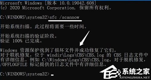 2. 然后输入代码:**c /scannow